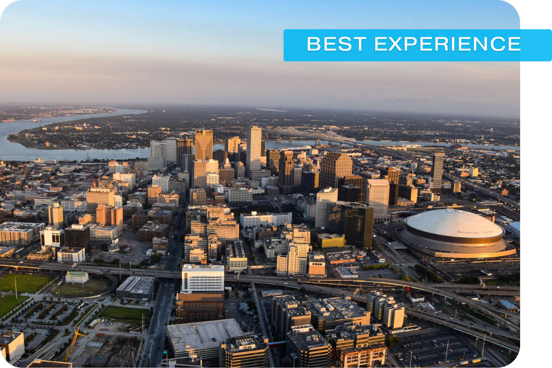 Join us after sunset for our night flight to see just how bright the Crescent City sparkles when the sun goes down!